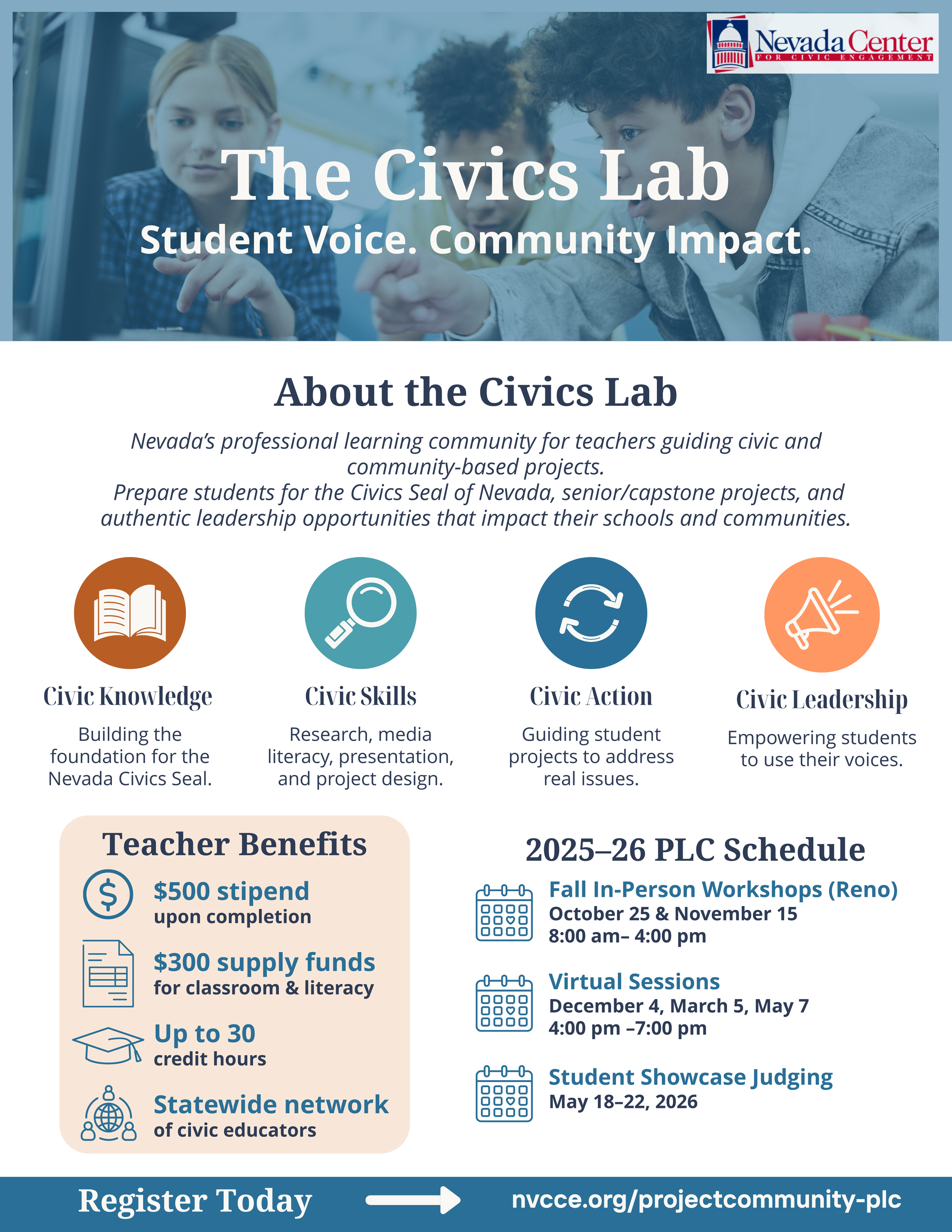 Turn student curiosity into community action with The Civics Lab, a hands-on professional learning experience built around the Project Community curriculum. Learn how to guide students as they investigate local issues, craft policy solutions, and lead real civic change.
